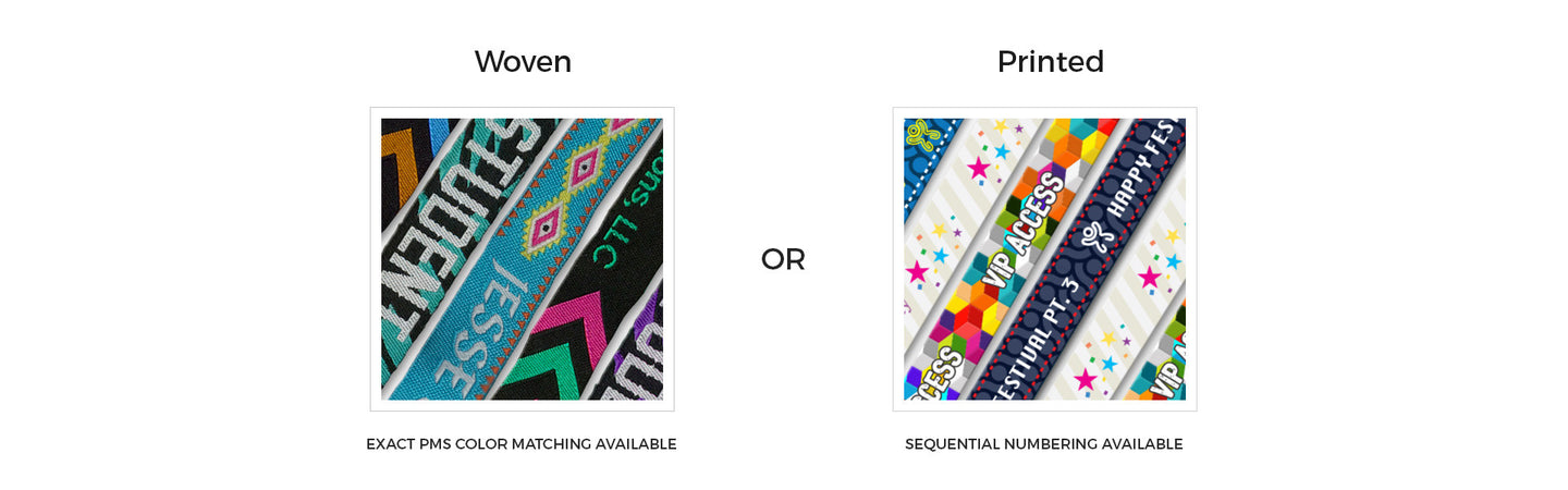 Our custom woven cloth wristbands offer a stylish and secure admission solution for your next event. If you’re looking for a worry-free way to organize your guests and earn some extra branding points, these bands are perfect.